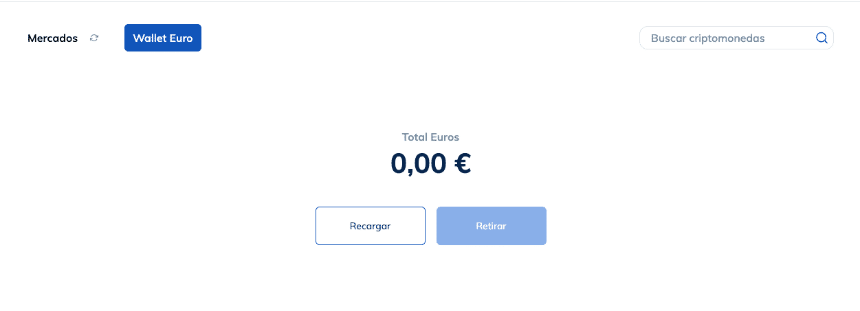 The euros or FIAT wallet will allow you to buy and sell cryptocurrencies.