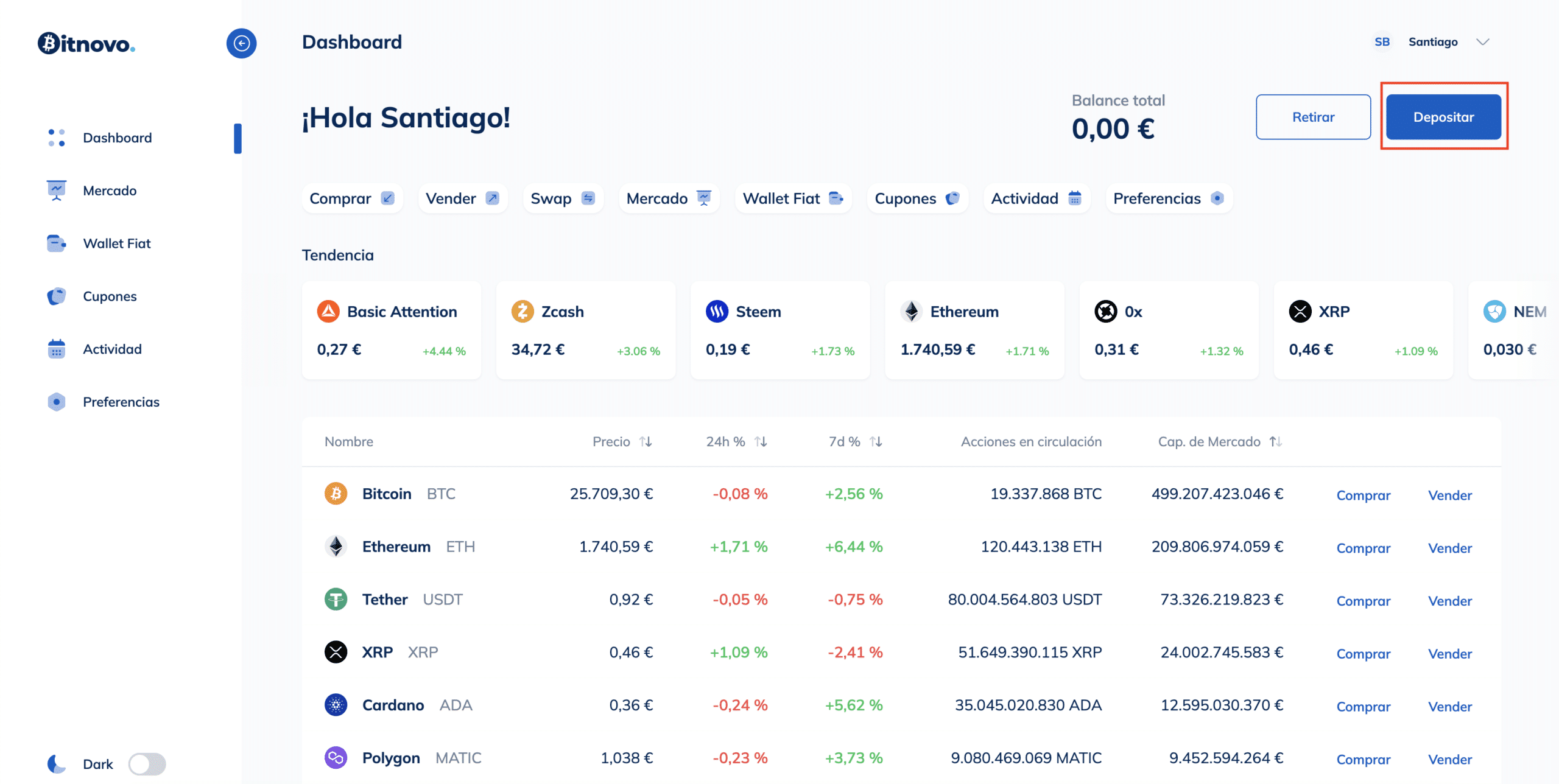 In Bitnovo, you can make a deposit in euros and recharge your wallet with euros or FIAT through bank transfer.