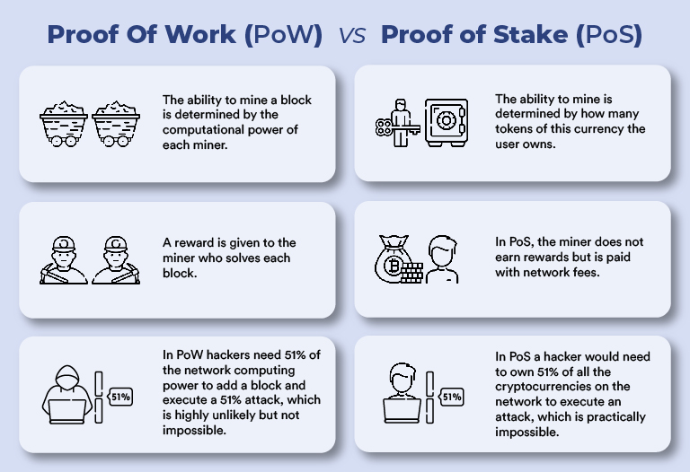Then, if we compare the PoW and PoS systems, we find the following differences: