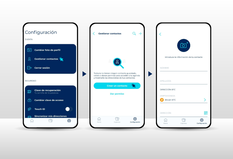 Paso a paso para agregar un contacto y enviar criptomonedas