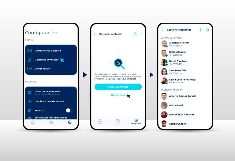 El lanzamiento de nuestra nueva app trajo muchas novedades para todos nuestros usuarios. Una de las más interesantes, es la posibilidad de crear una lista de contactos Bitnovo y enviarles criptomonedas como si se tratase de Bizum.