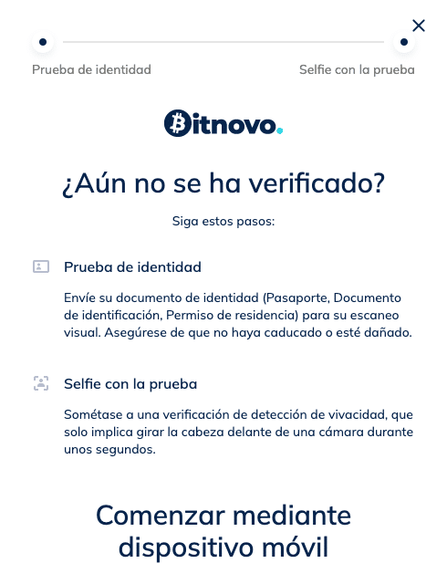 La vérification de l’identité est un processus important chez Bitnovo pour garantir votre protection et le respect des réglementations internationales.