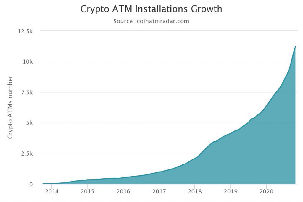 Grafico che mostra la crescita delle installazioni di ATM Bitcoin dal 2013.