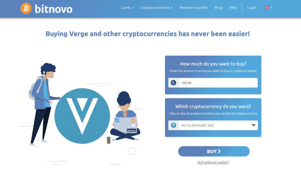 È normale che a questo punto ti chieda: dove comprare XVG, la criptovaluta Verge, e lascia che ti dica che è molto facile. Su Bitnovo puoi comprare Verge online in modo molto semplice e veloce. Il nostro sito è stato progettato in modo che anche i più principianti possano farlo.