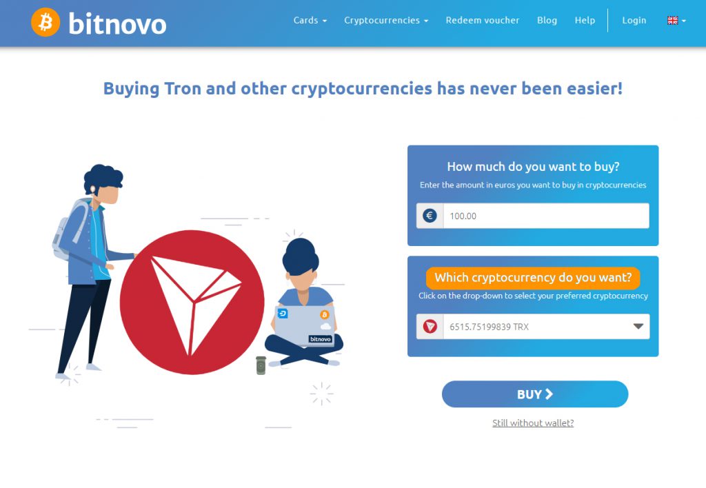 Attualmente, il modo più semplice per ottenere questa criptovaluta è comprare TRX su Bitnovo. Perché? Perché hai diversi metodi a tua disposizione per comprare criptovaluta e perché, inoltre, è un processo molto veloce e sicuro. Dai un’occhiata!