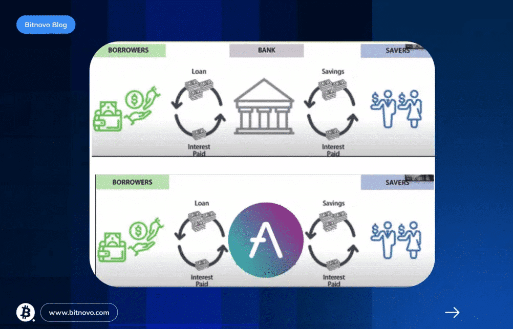 Aave reemplaza a un banco tradicional para conectar prestamistas y prestatarios.