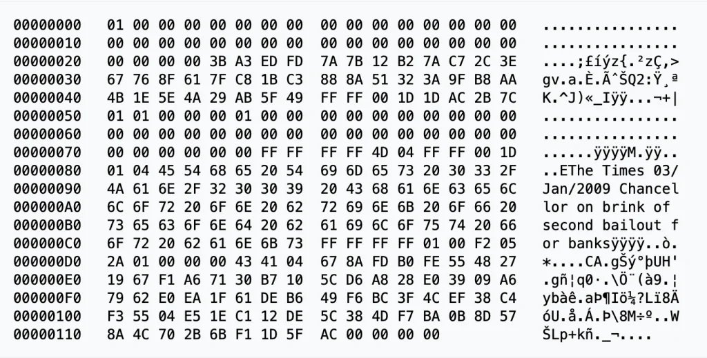 Além disso, Satoshi Nakamoto incluiu um excerto do jornal The Times nos dados do bloco: