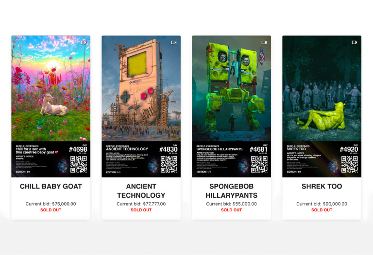 Desde artistas como el artista visual Cey Adams, Kenny Schar, Trevor Jones, entre otros; hasta populares objetos de criptojuegos como CryptoKitties.