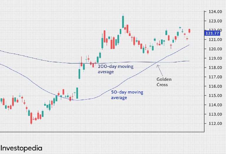 Tal como anticipé en la introducción de este artículo, estamos frente a un Golden Cross cuando nos topamos que una media móvil a corto plazo atraviesa hacia arriba una media móvil trazada a largo plazo.